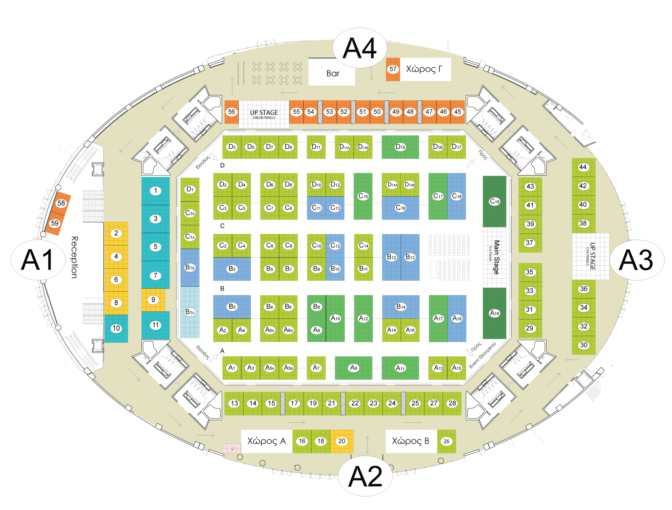 Ανακαλύψτε την έκθεση μέσα από την κάτοψη!Κάντε click στο περίπτερο που σας ενδιαφέρει για να δείτε περισσότερα.